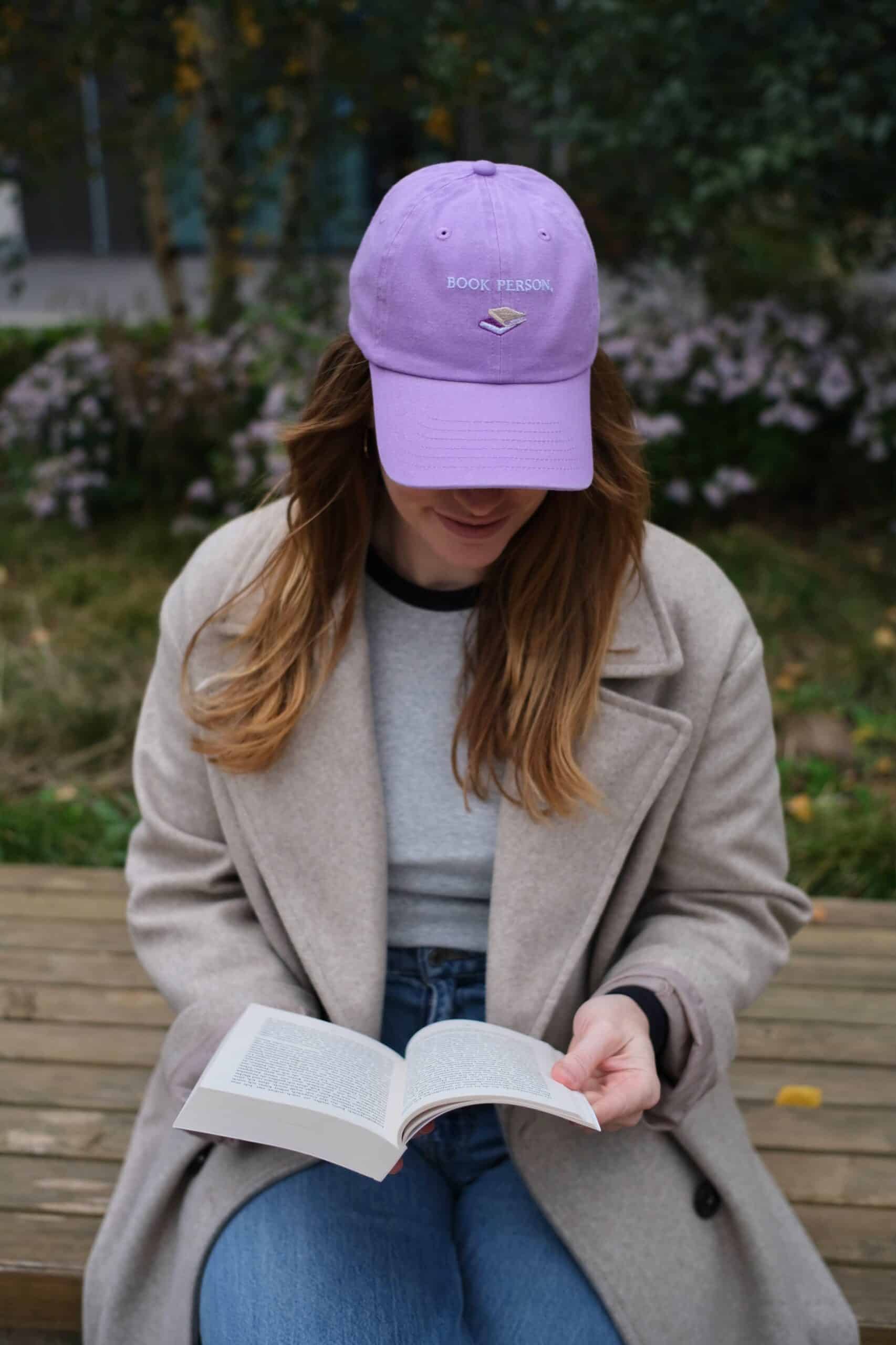 Die „Book Person.“ Cap in zartem Flieder ist ein Must-have für alle, die sich in Geschichten verlieren.